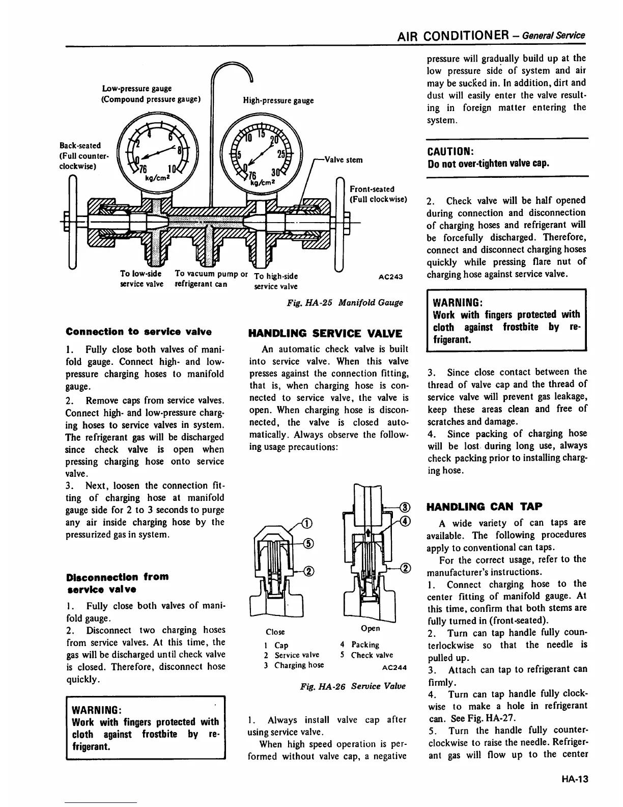 Datsun 1980 310 - Handling Service Valve; Handling Cap Tap; Connection to Service Valve; Disconnection from Service Valve