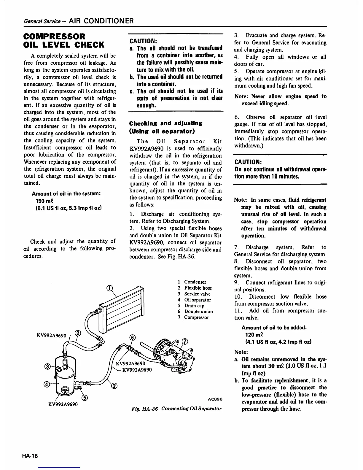 Datsun 1980 310 - Compressor Oil Level Check; Using Oil Separator