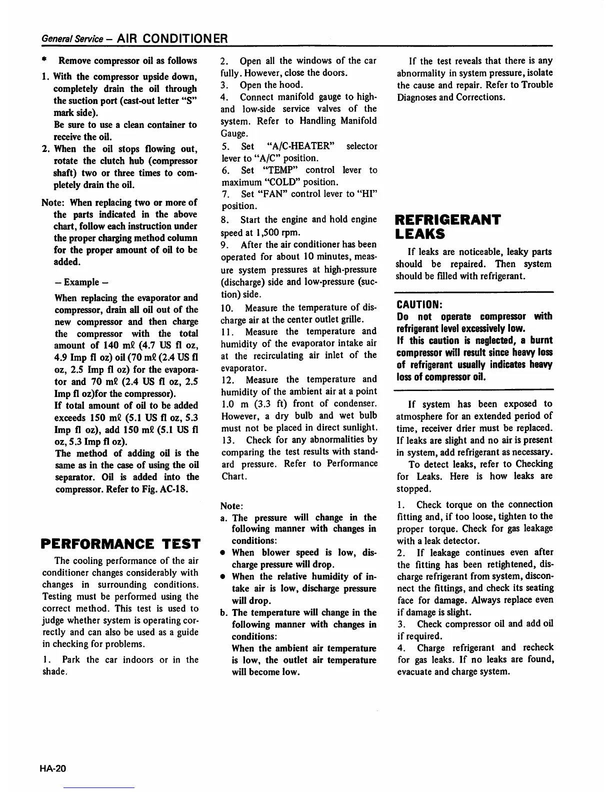 Datsun 1980 310 - Refrigerant Leaks; Performance Test
