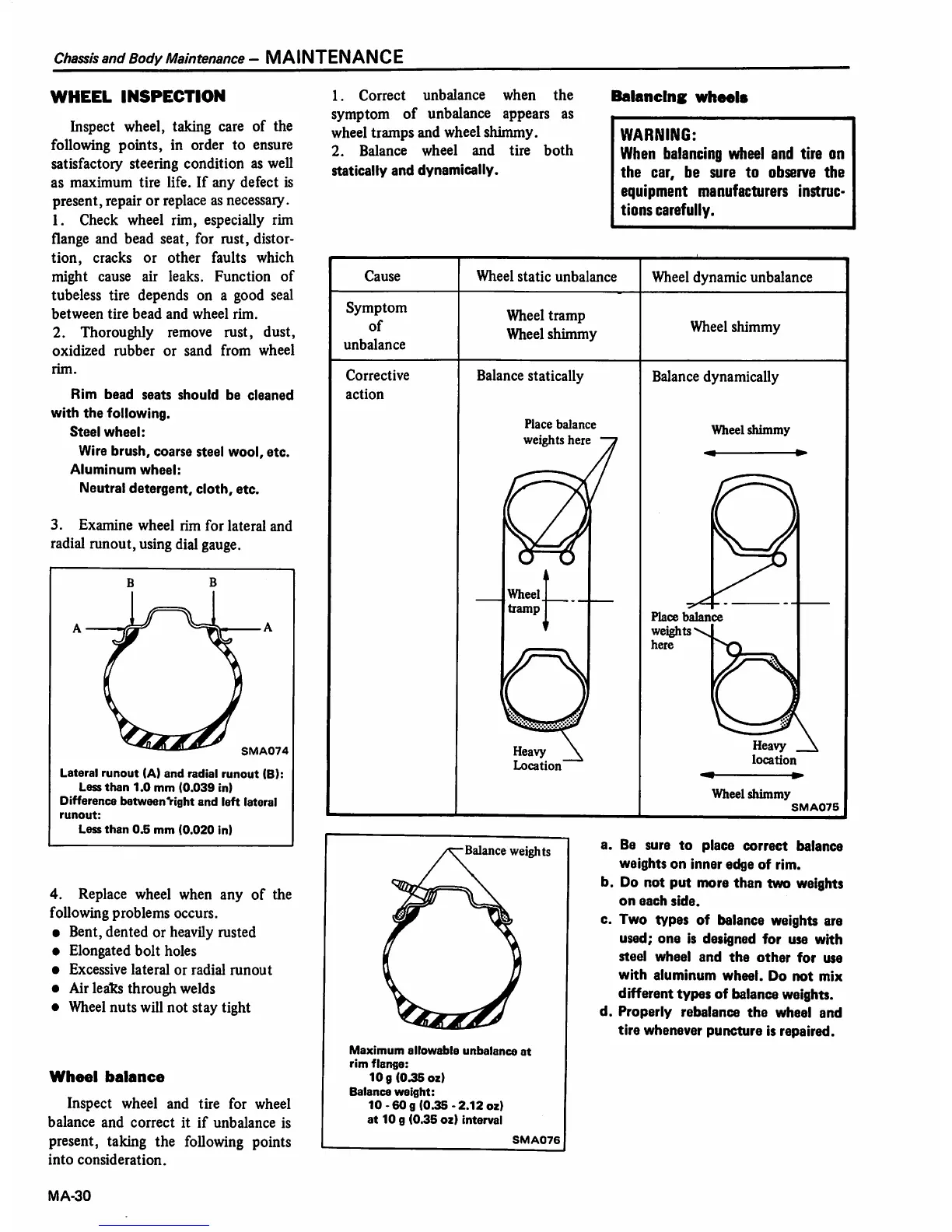 Datsun 1980 310 - Wheel Inspection; Wheel Balance; Balancing Wheels