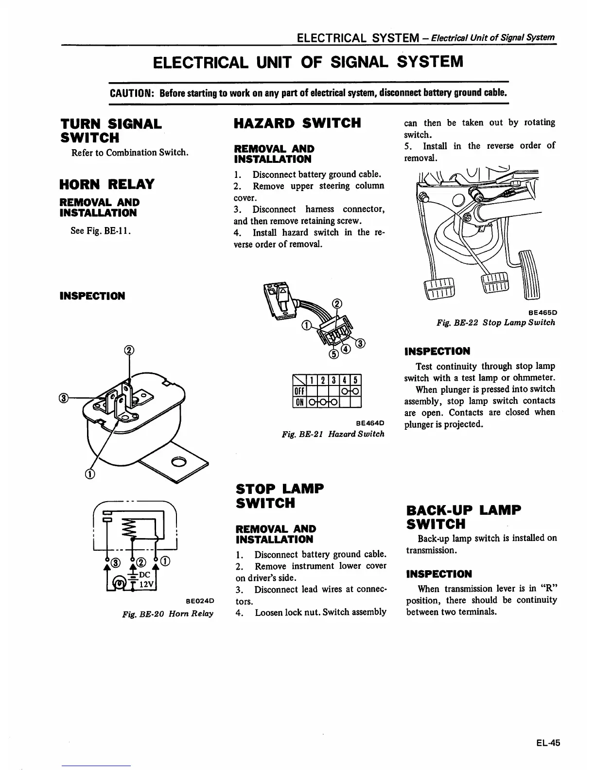 Datsun 1980 310 - Electrical Unit of Signal System; Turn Signal Switch; Horn Relay; Back up Lamp Switch