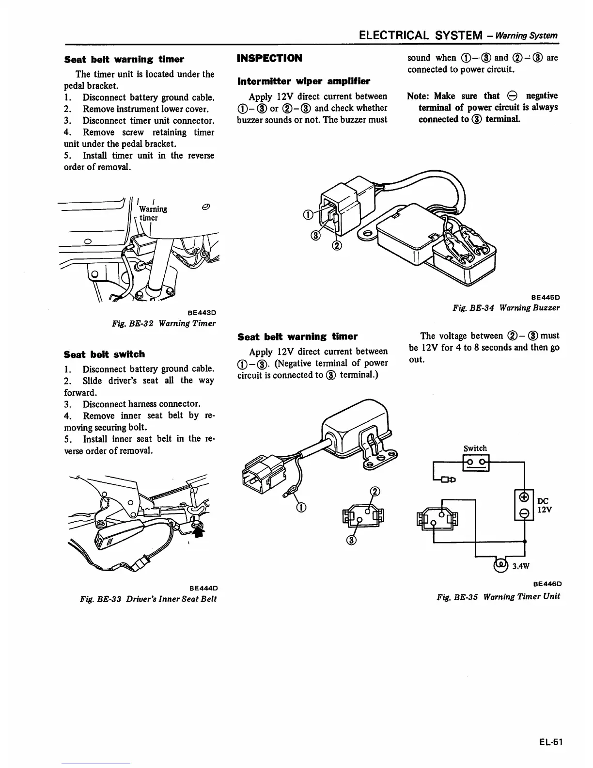 Datsun 1980 310 - Seat Belt Warning Timer; Seat Belt Switch; Intermitter Wiper Amplifier