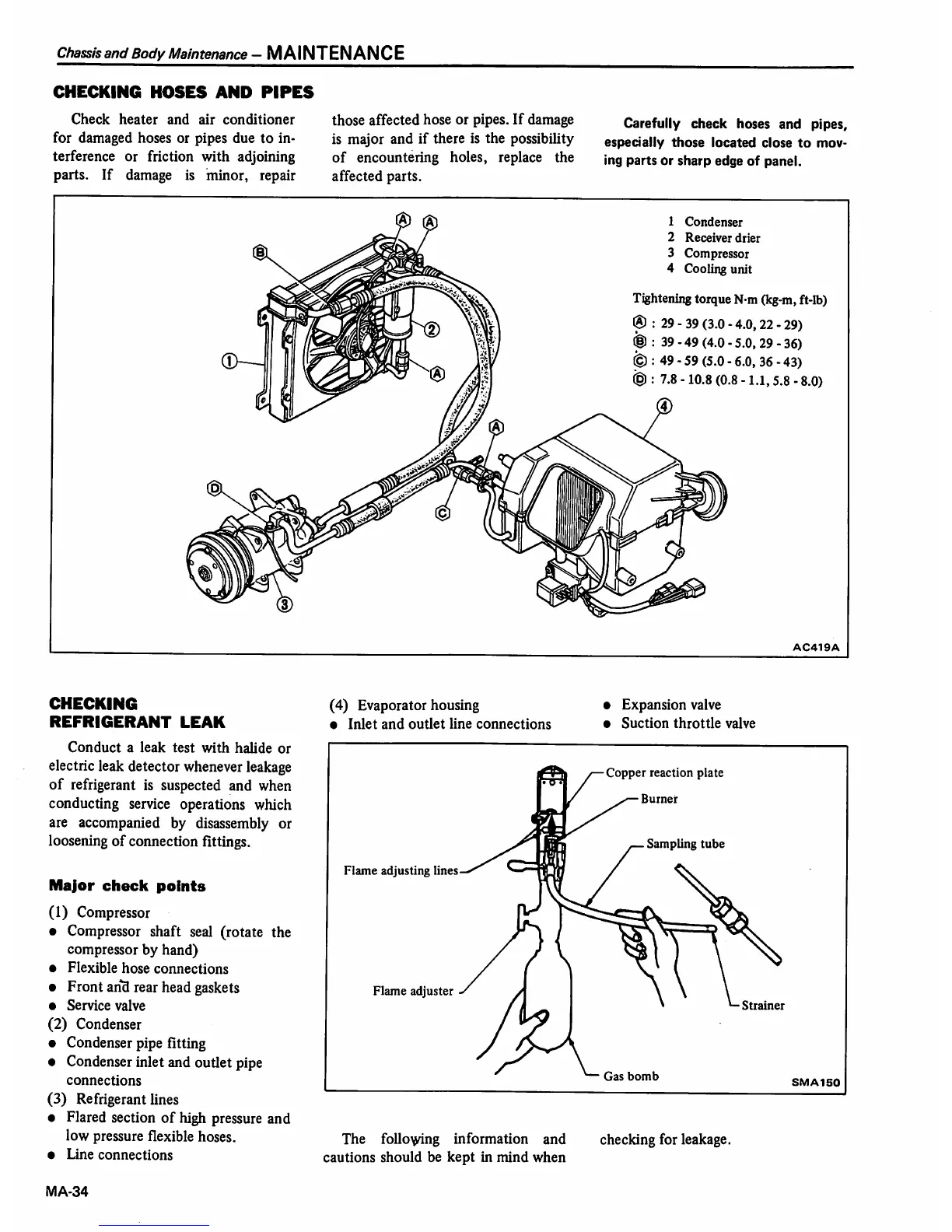 Datsun 1980 310 - Checking Hoses and Pipes; Checking Refrigerant Leak; Major Check Points