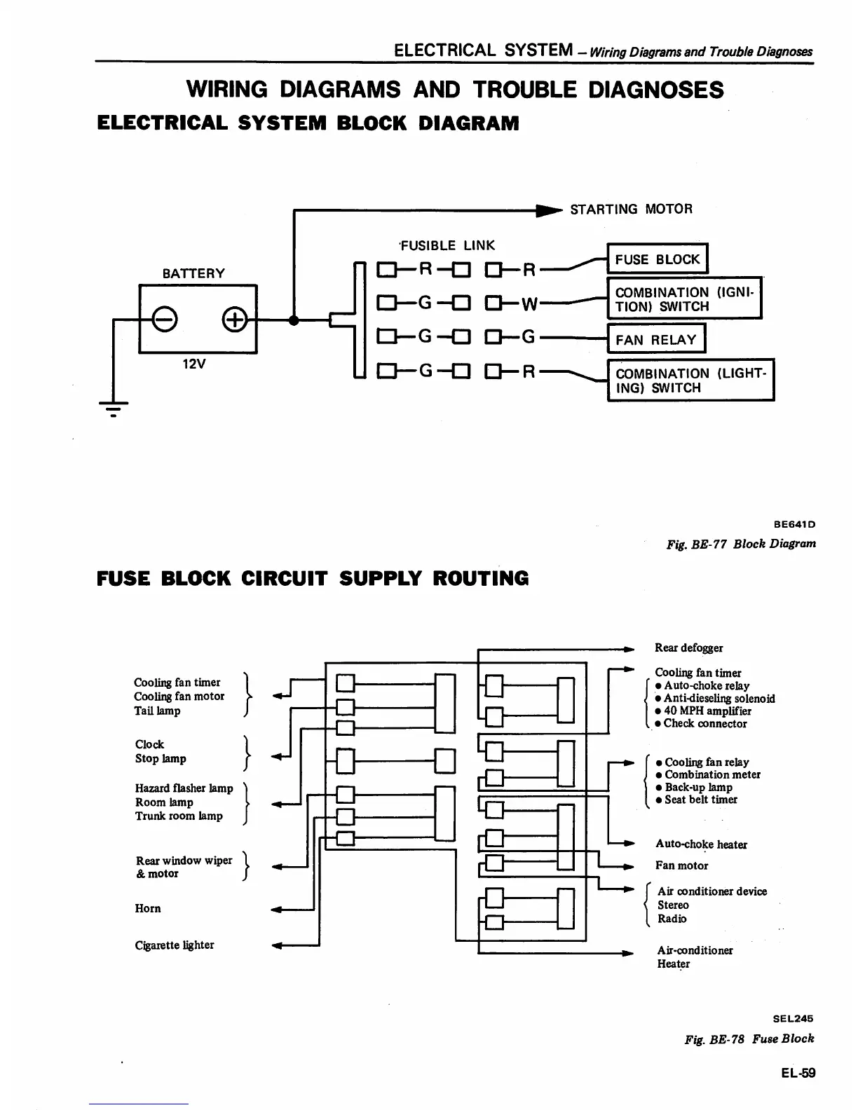 Datsun 1980 310 - Wiring Diagrams and Trouble Diagnoses; Electrical System Block Diagram; Fuse Block Circuit Supply Routing
