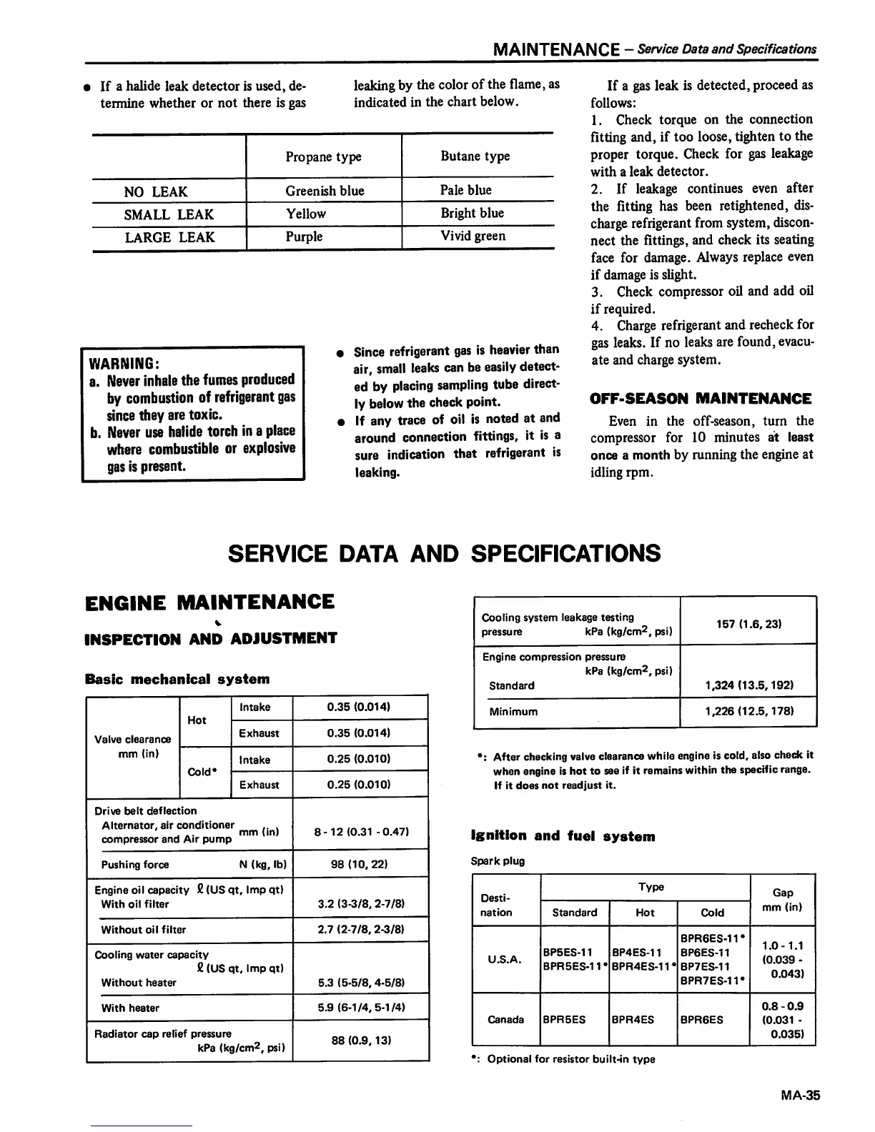Datsun 1980 310 - Service Data and Specifications; Off Season Maintenance