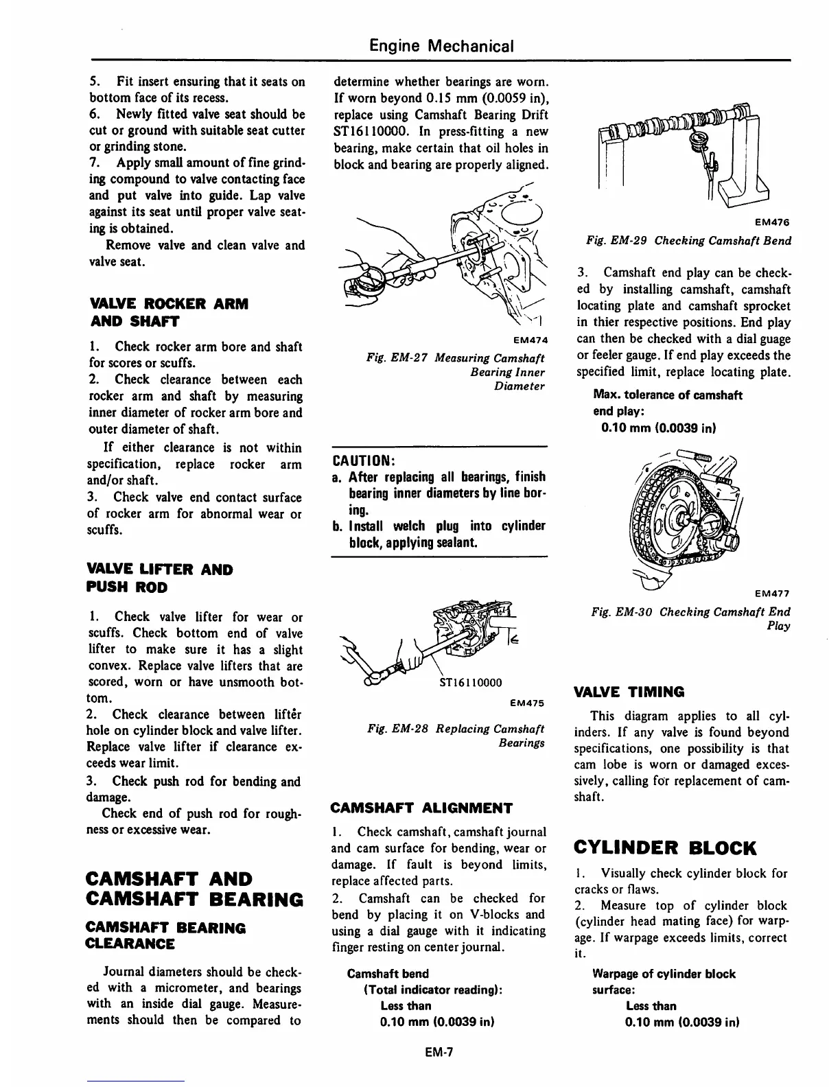 Datsun 1980 310 - Valve Rocker Arm and Shaft; Valve Lifter and Push Rod; Camshaft Bearing Clearance; Cylinder Block
