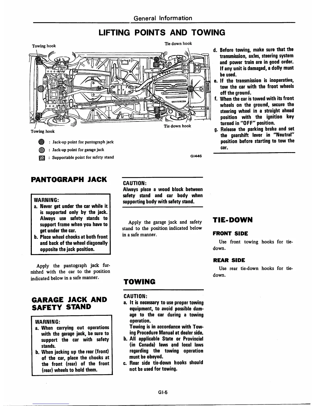 Datsun 1980 310 - Lifting Points and Towing; Pantograph Jack; Garage Jack and Safety Stand; Towing