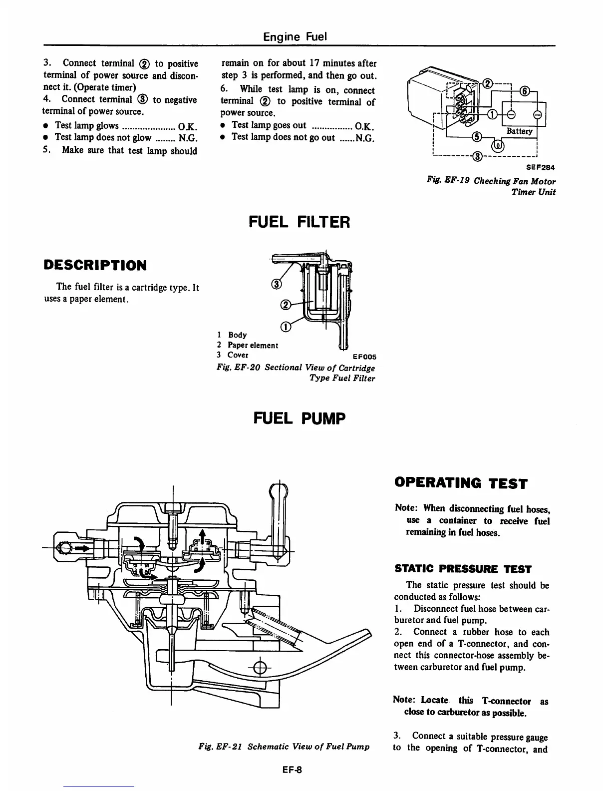 Datsun 1980 310 - Fuel Filter; Fuel Pump; Operating Test; Static Pressure Test