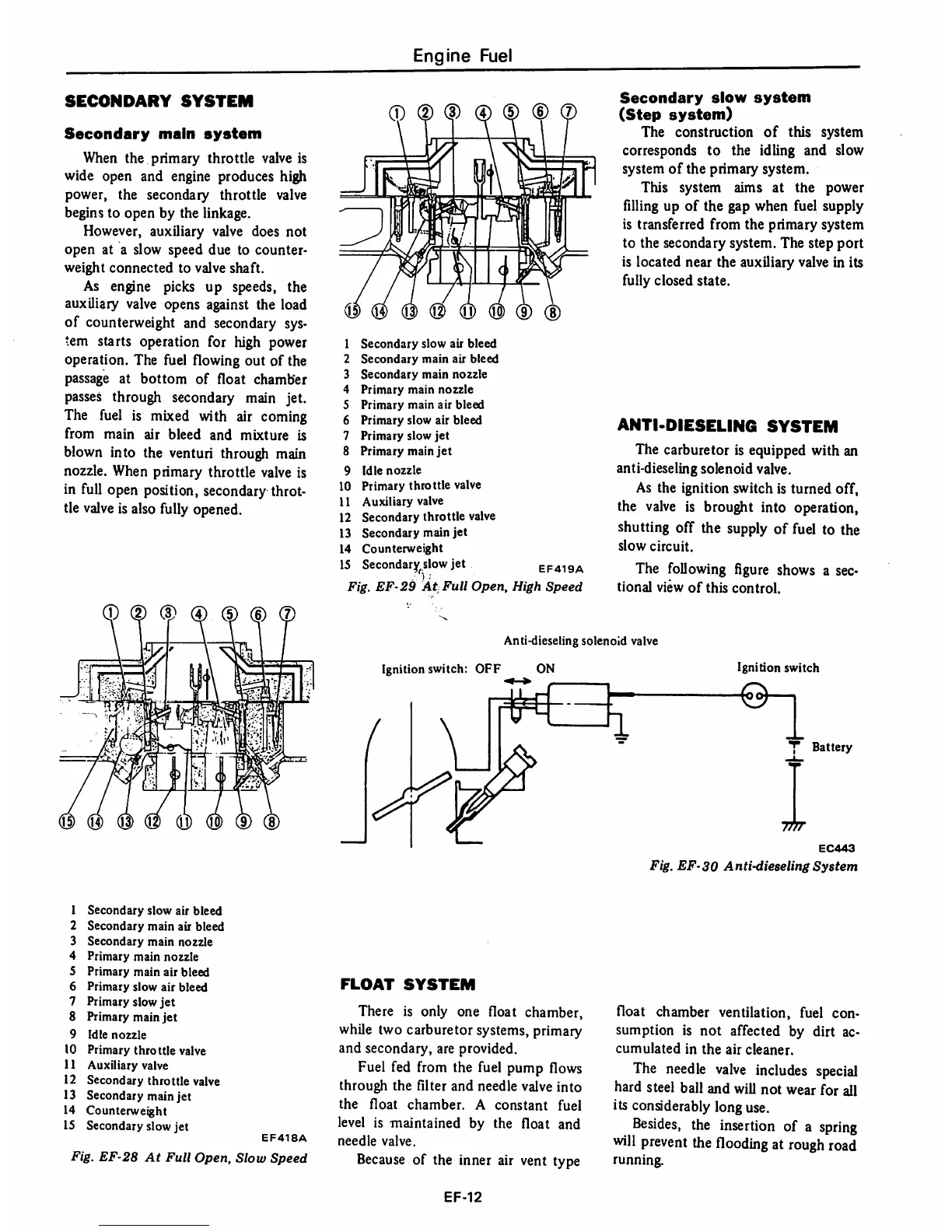 Datsun 1980 310 - Secondary System; Anti-Dieseling System; Secondary Slow System; Float System