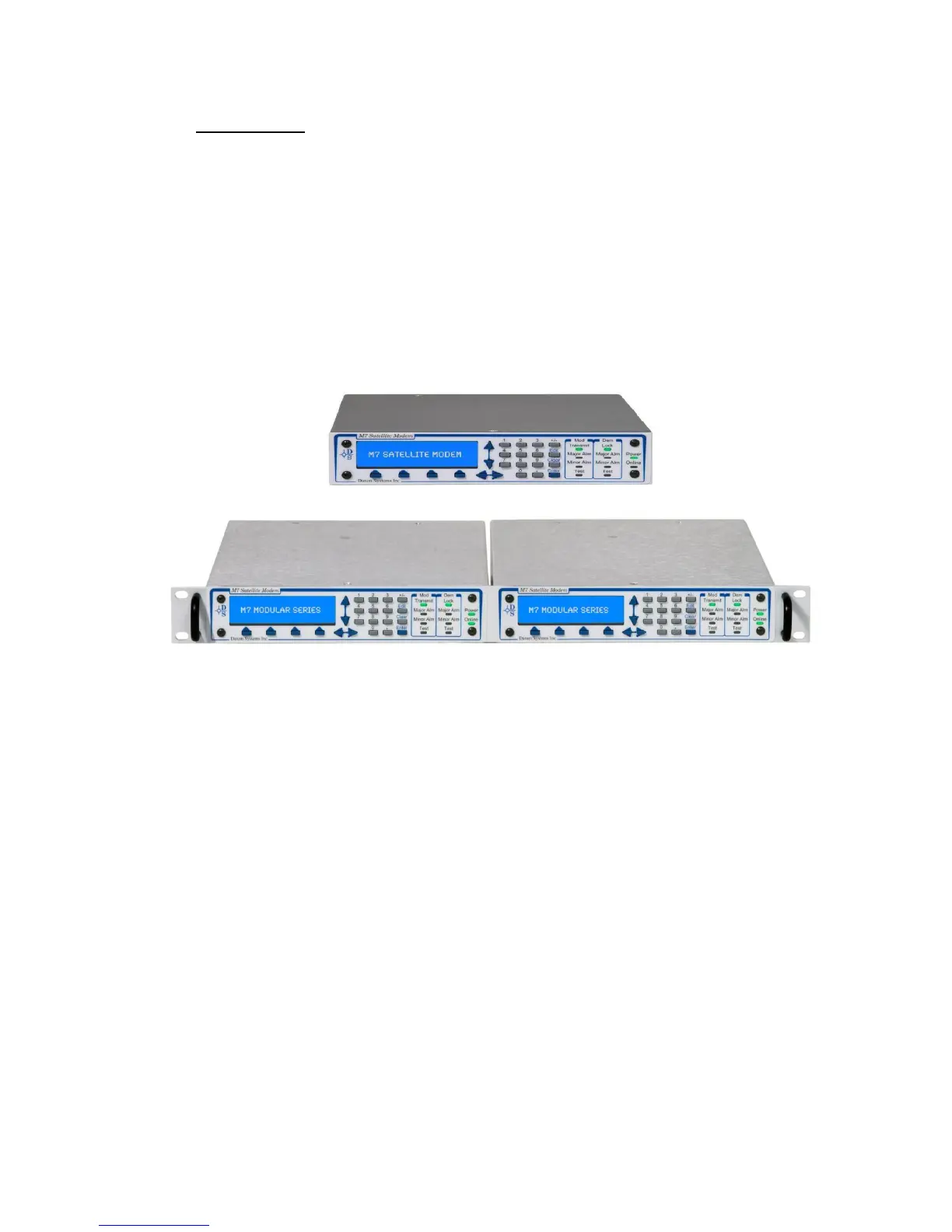 The Datum Systems M7 series modular satellite modems (Figure 1-1) represent a major extension to