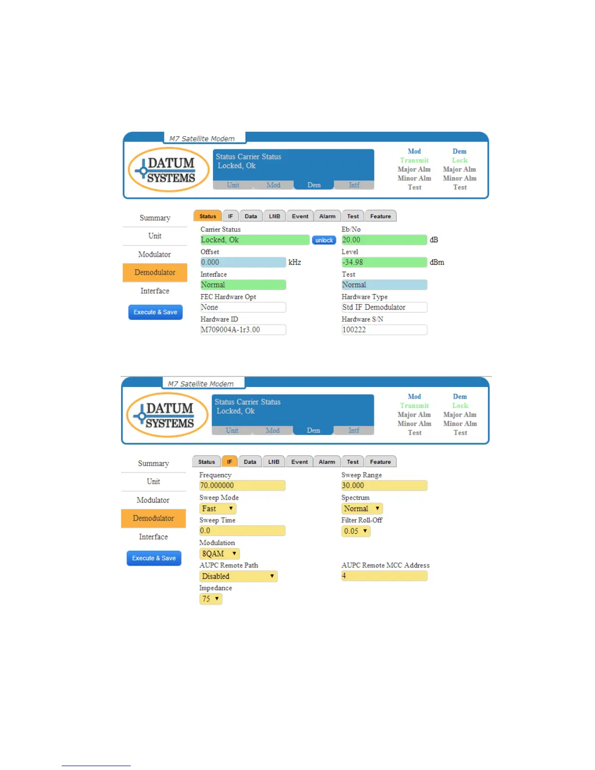 Figure 3-17 – Demodulator Status Page