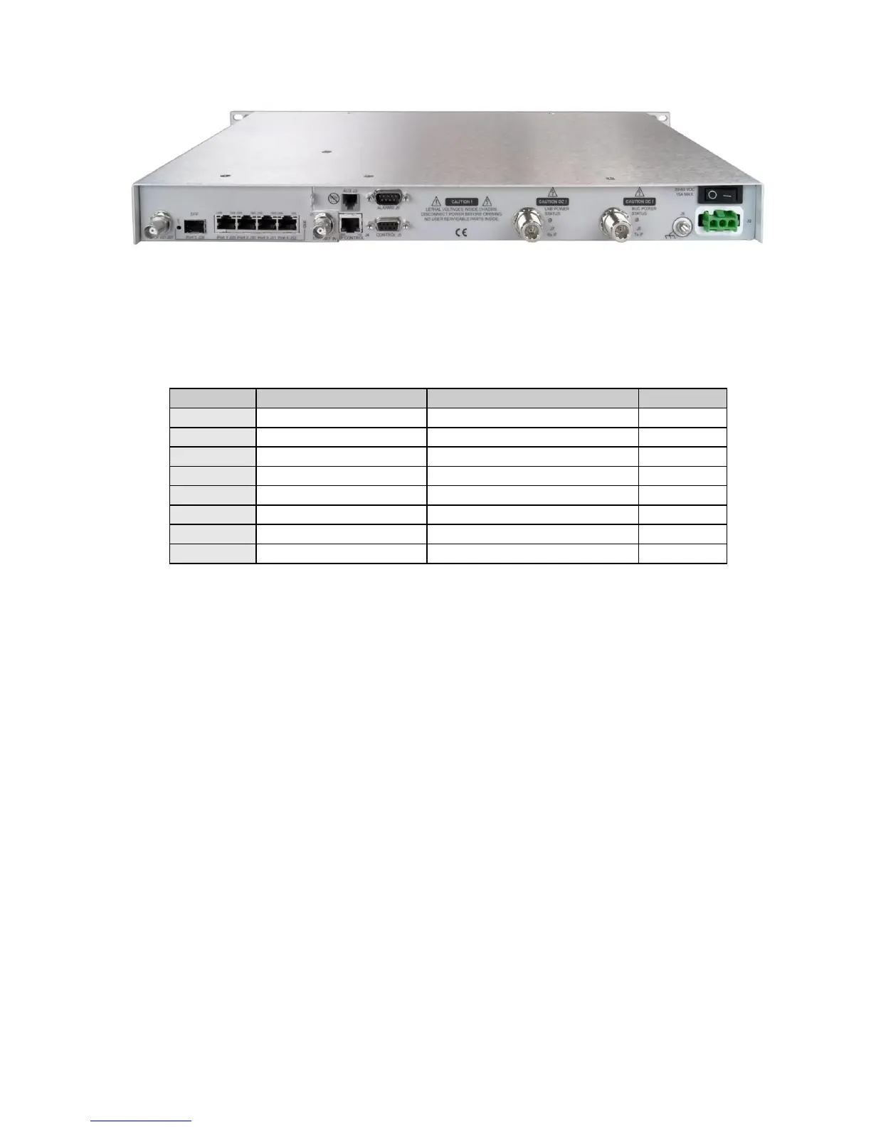 The RJ45 IP Control connection provides remote control of the modem via a Web Browser page or
