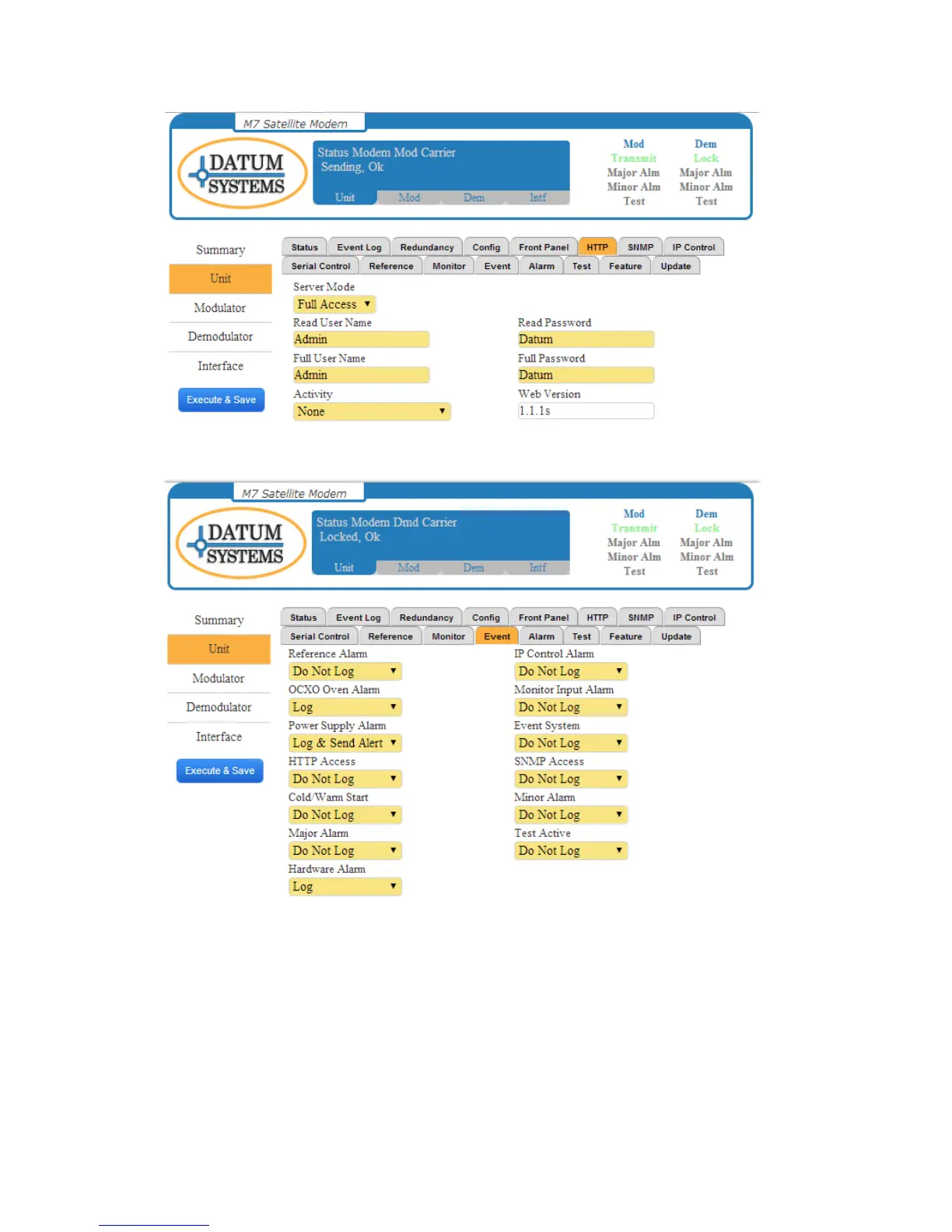Datum Systems M7LT Series - Figure 3-11 - Unit HTTP Page; Figure 3-12 - Unit Event Page