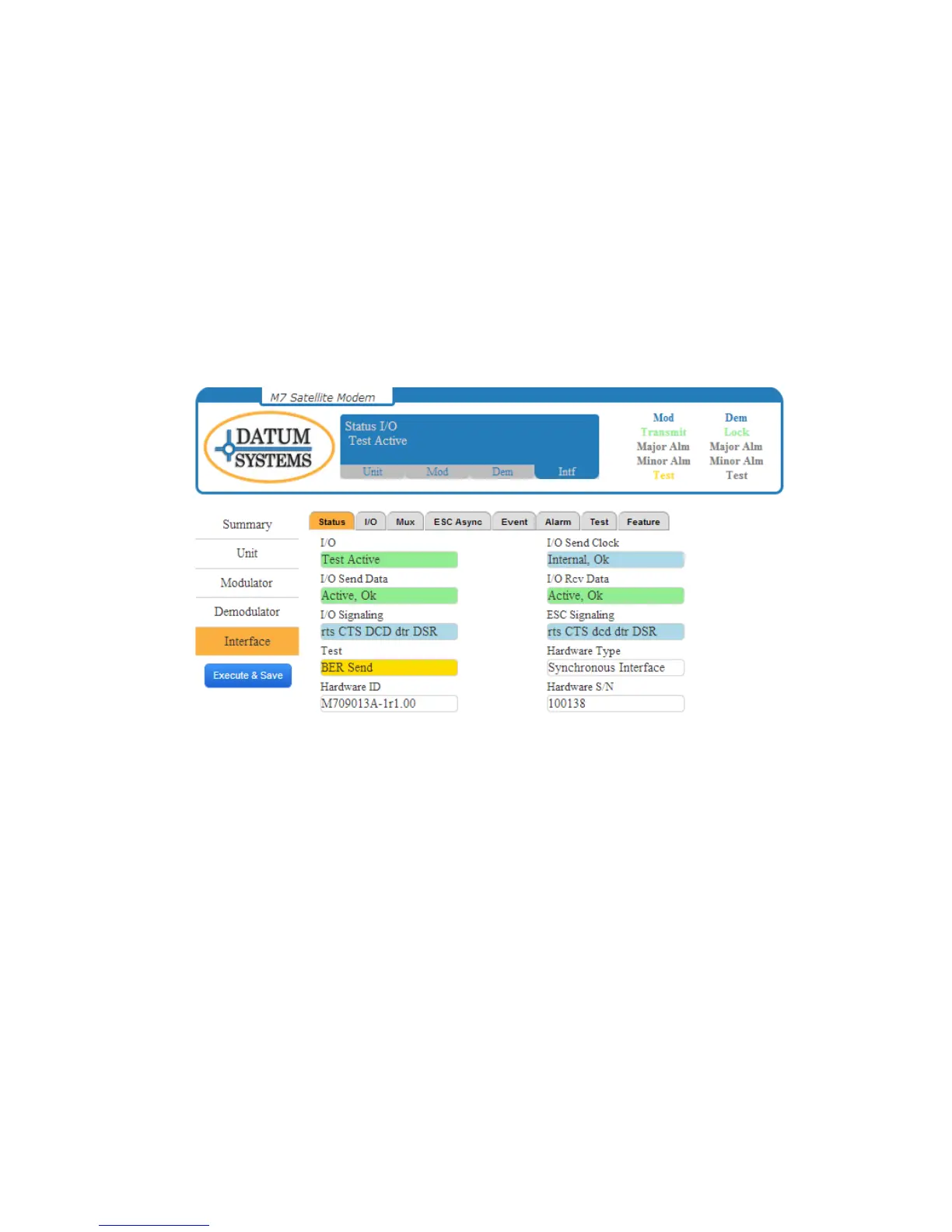 NOTE: The active interface is selected in the “Modulator” and “Demodulator” Data Interface pages.