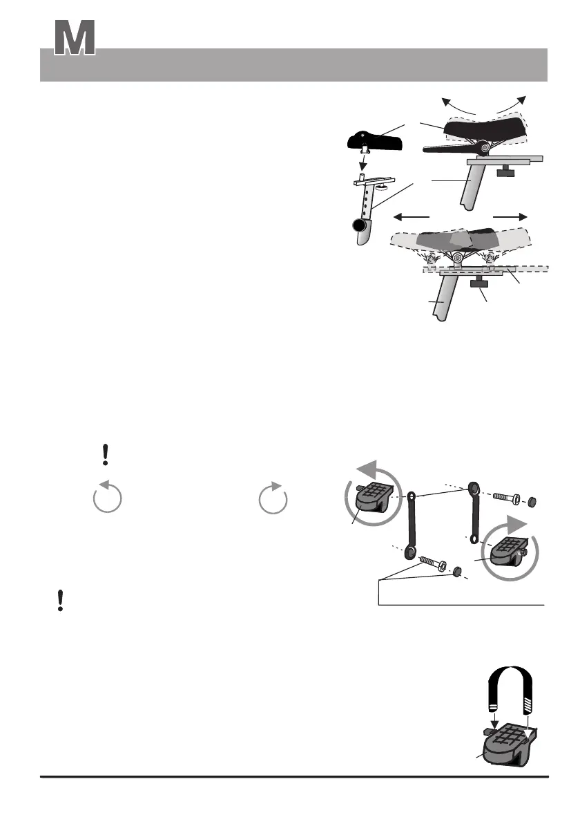 Screw the pedal marked with an “L” to the pedal rod on the left side, and the one marked