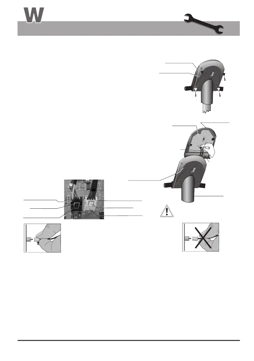 Plug the dashboard connector / CS (black) and the hand pulse connector / HS (white) to the female connector of the