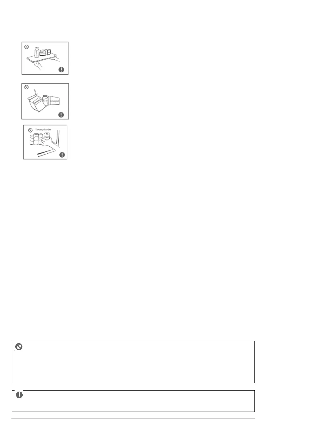 2) Следует отметить, что шипучие напитки не следует хранить в морозильных отделениях / шкафах или в