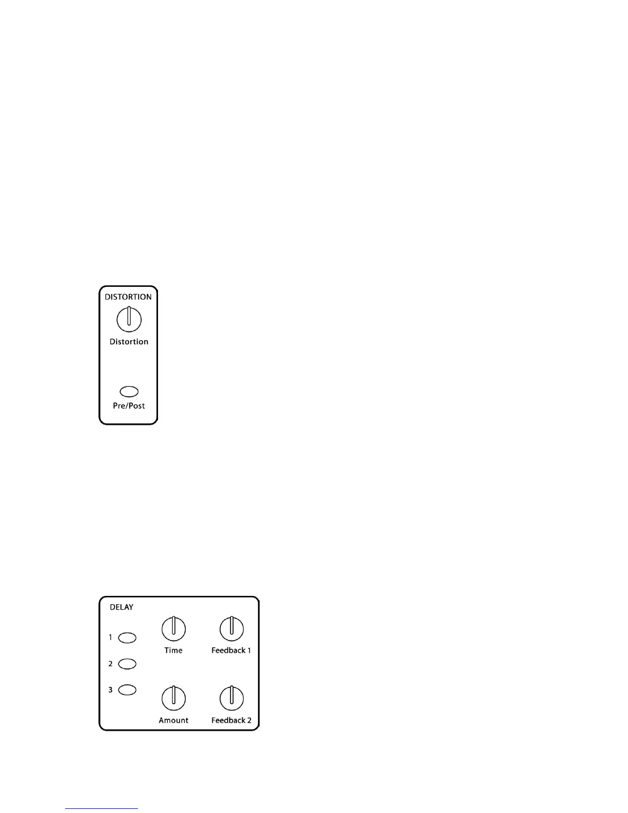 switch is off (unlit), the distortion is introduced after the analog filter, VCA,