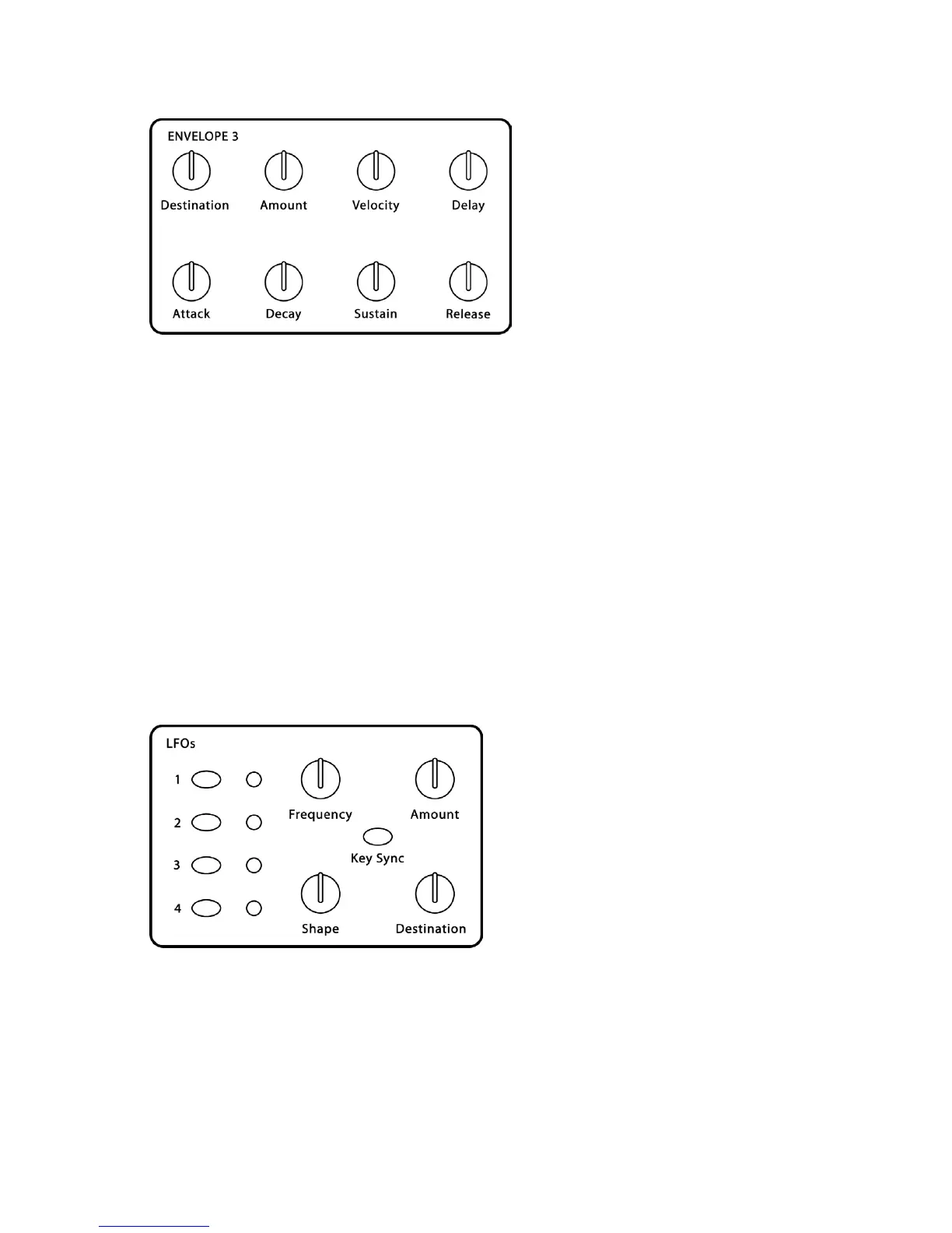 adjust the parameters of the selected LFO. Holding one of the four switches will solo