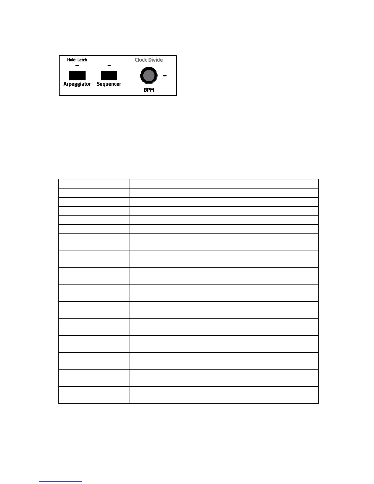 Arpeggiator—Turns Mopho x4’s arpeggiator on and off. The tempo and note