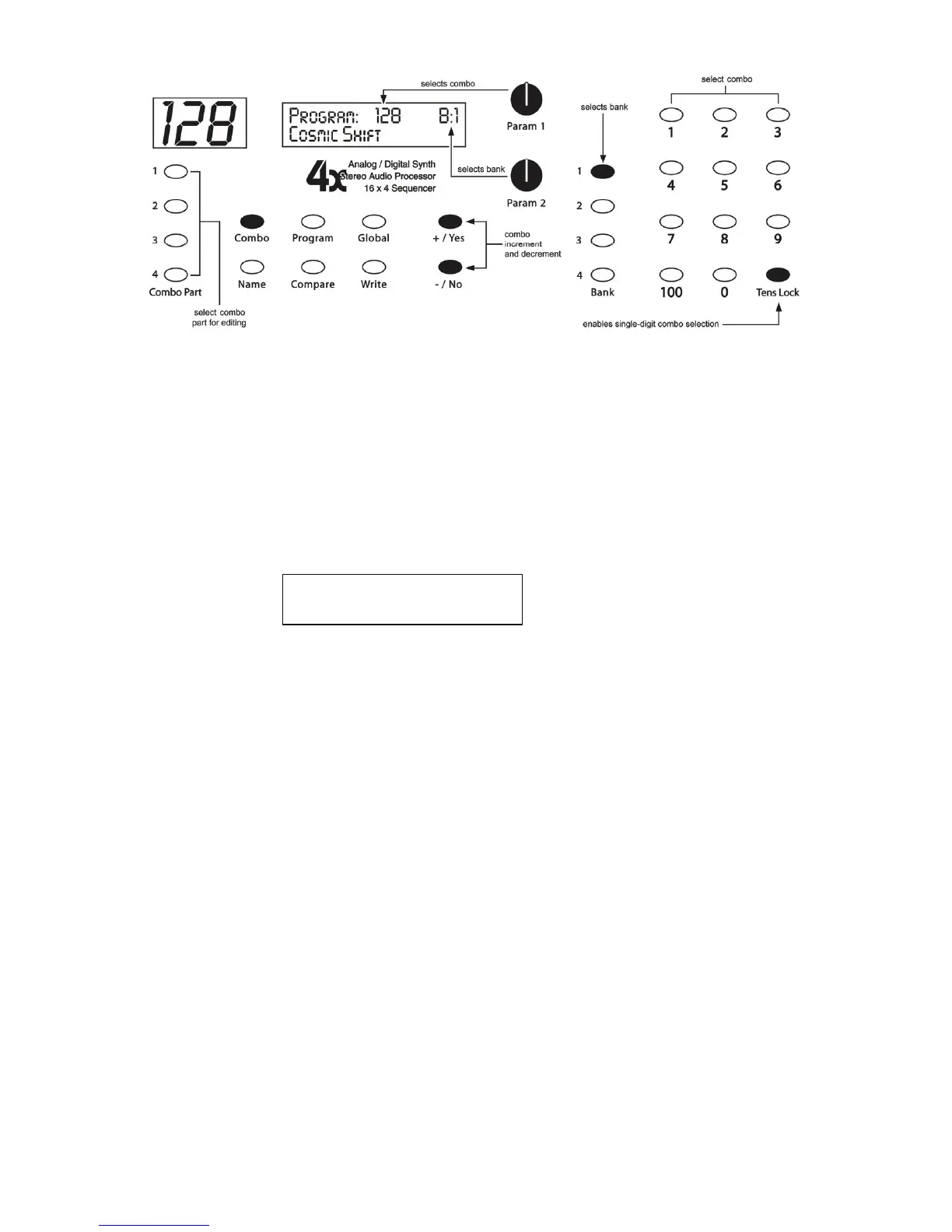 Press the +/YES switch to save the current Program or Combo, or -/NO (or the WRITE