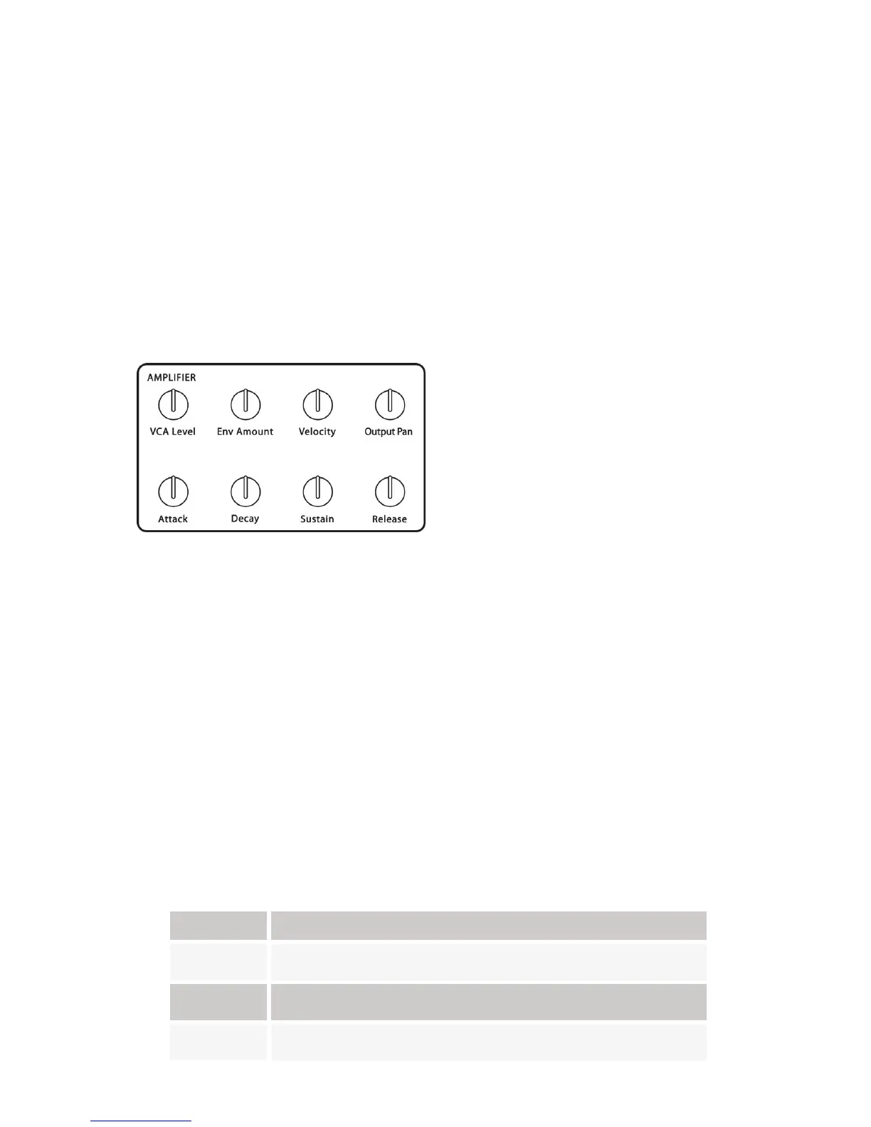 Env Amount: 0…100 – Sets the amount of VCA envelope to the VCA level.