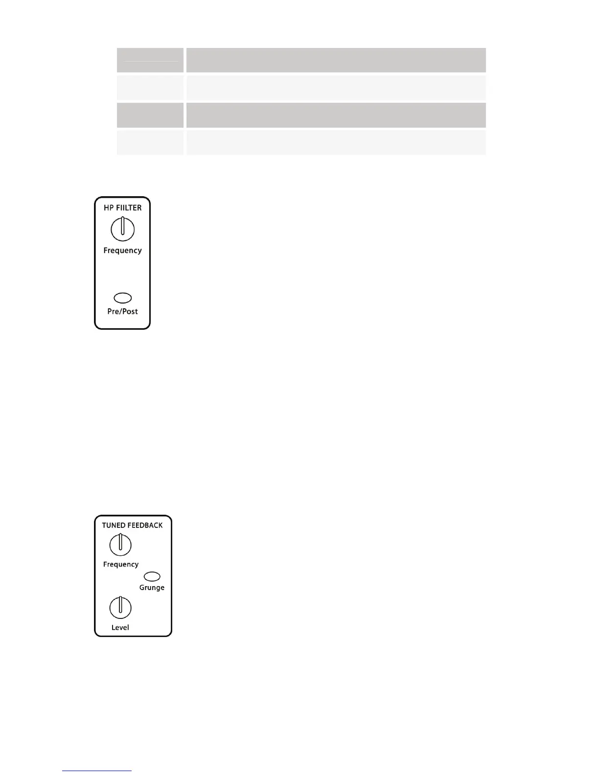 Frequency: 0…99 – Sets the cutoff frequency of the four-pole highpass filter. When