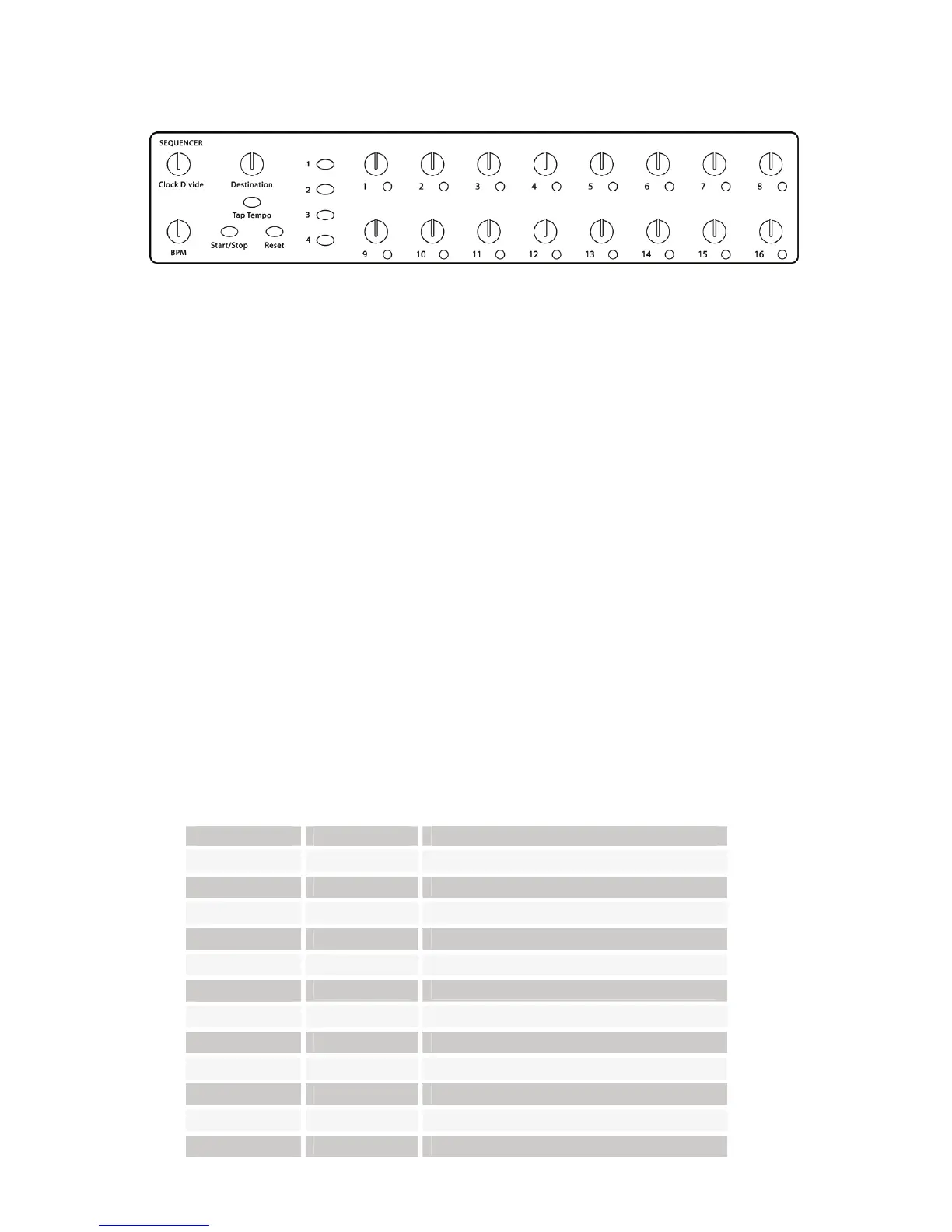Clock Divide: see table – Provides a wider range of sequencer speeds. When “Prog