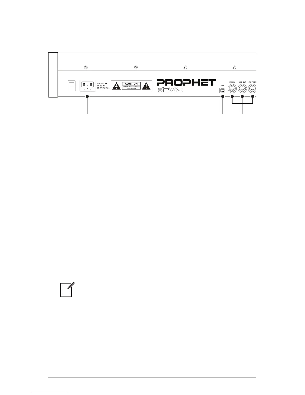 3. MIDI In, Out, and Thru—Standard 5-pin MIDI DIN connectors.