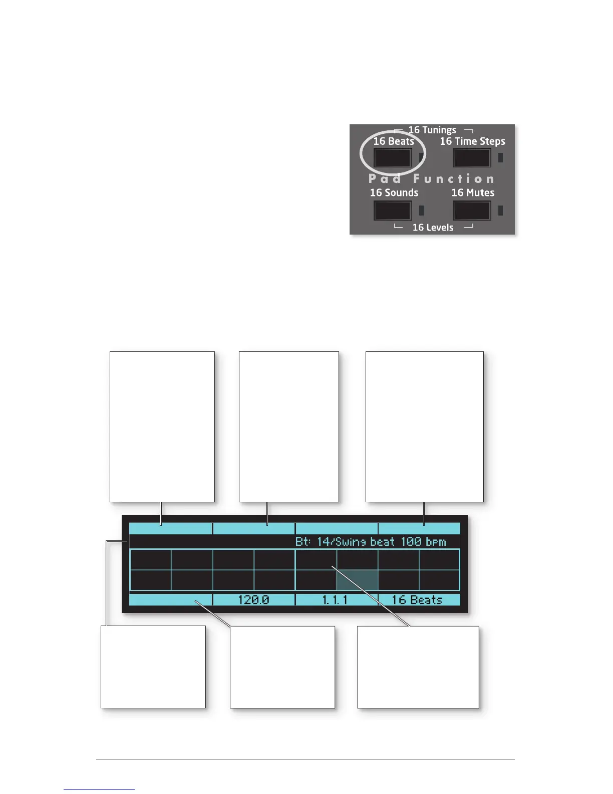 displayed, showing the beat assigned to each pad, plus related information and