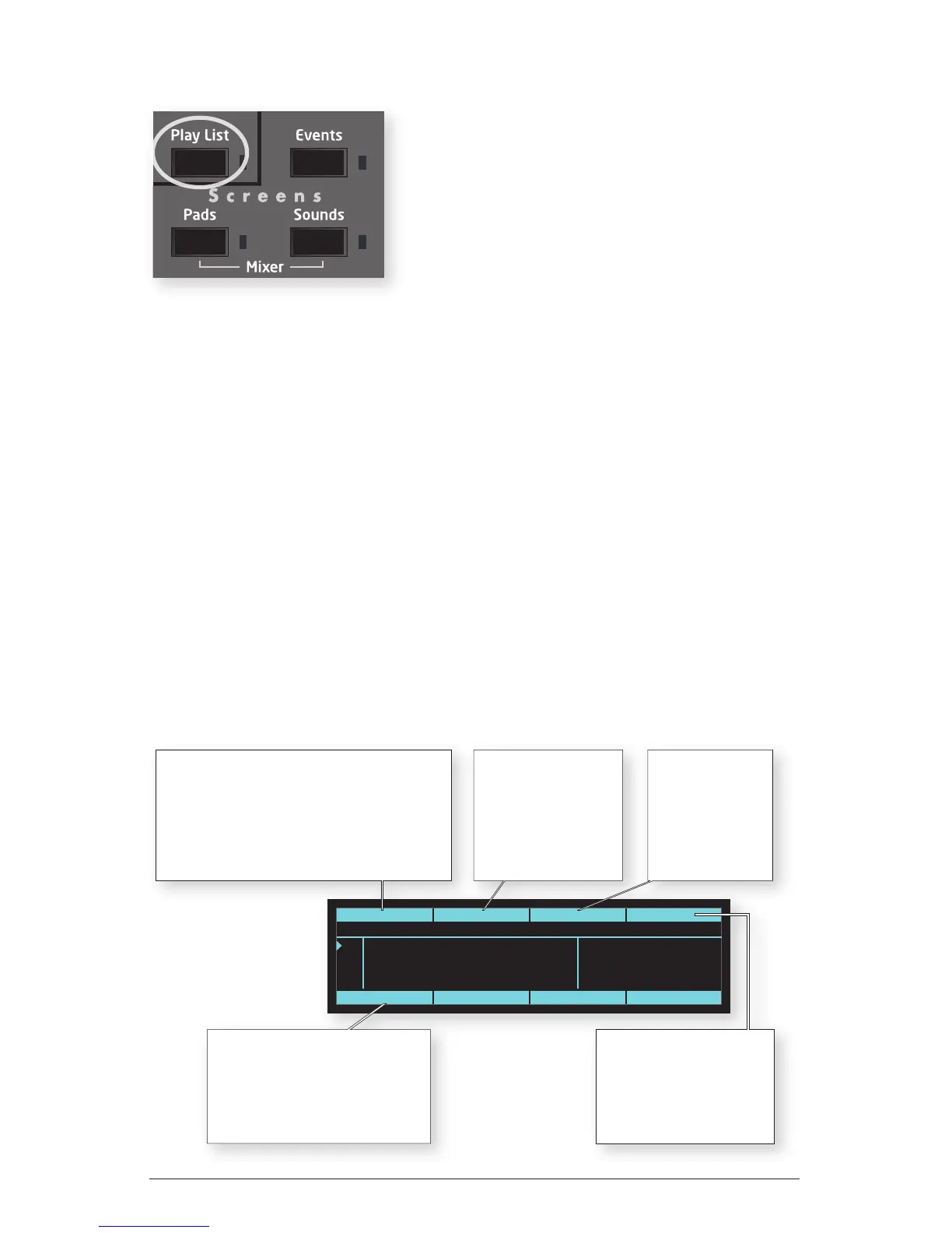 Events screen. If Play liSt is on, pressing the eventS key displays the Play List