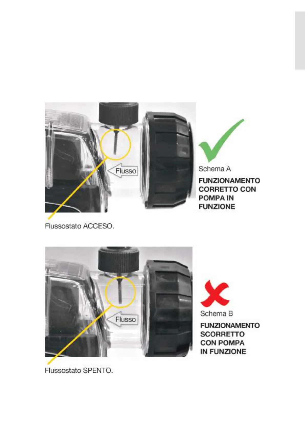 • Controllare periodicamente la paletta del flussostato di sicurezza per assicurarsi che sia libera di