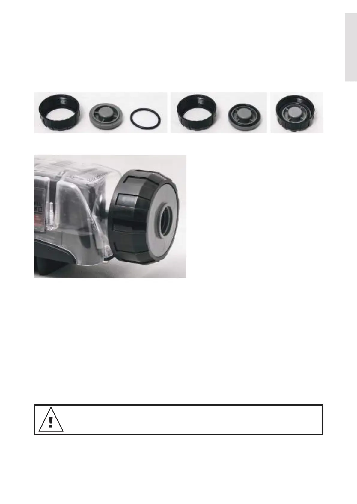 1. Assemblare un tappo di chiusura dal tappo in dotazione, dall'o-ring e dall'anello di bloccaggio.