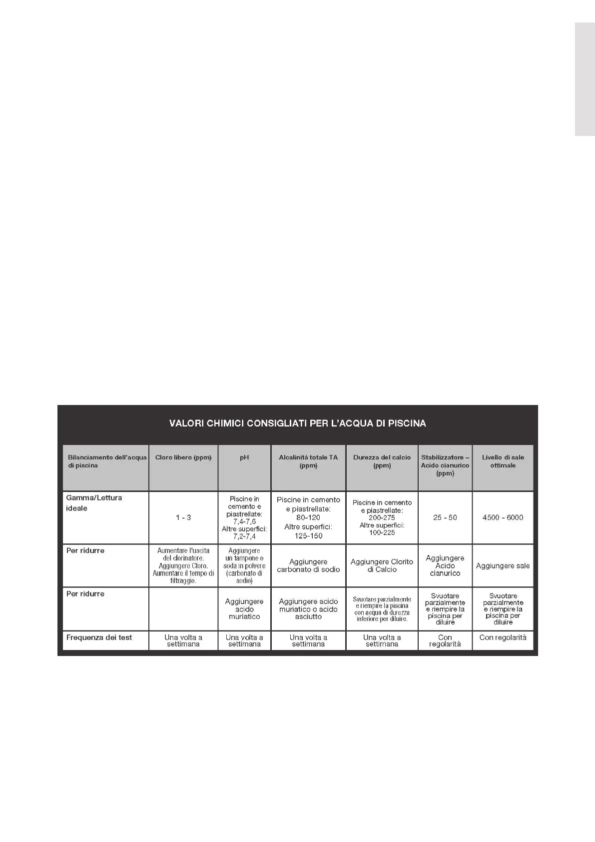 funzionamento diversi, nel qual caso occorre chiedere il parere del proprio rivenditore di piscine. Durante