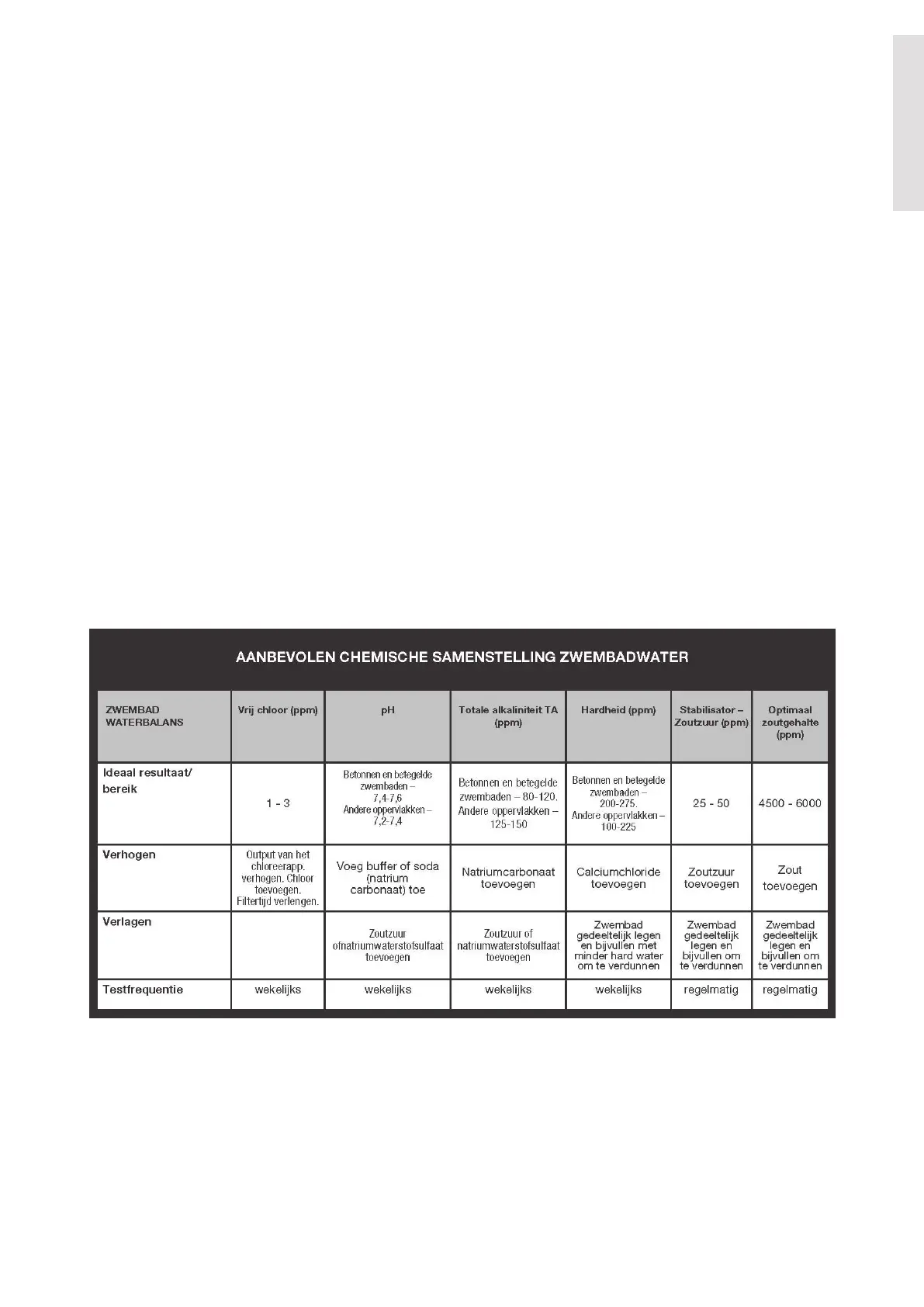 Het kan nodig zijn om van tijd tot tijd, vooral bij erg warm weer de chloorhoeveelheid in uw zwembad te