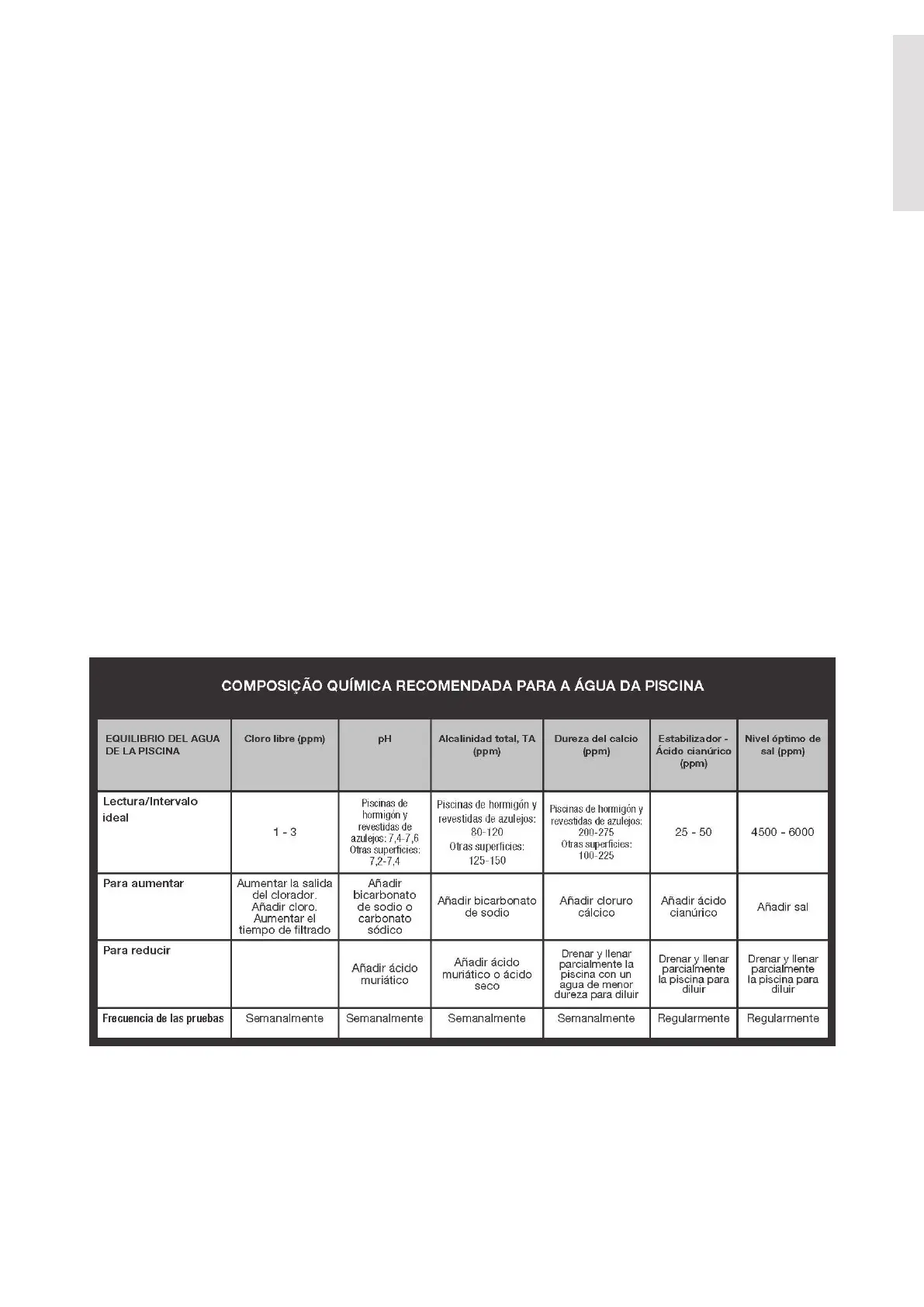 niveles de cloro a la mañana siguiente y sobre la misma hora. Si el nivel de cloro sigue siendo alto, repita el