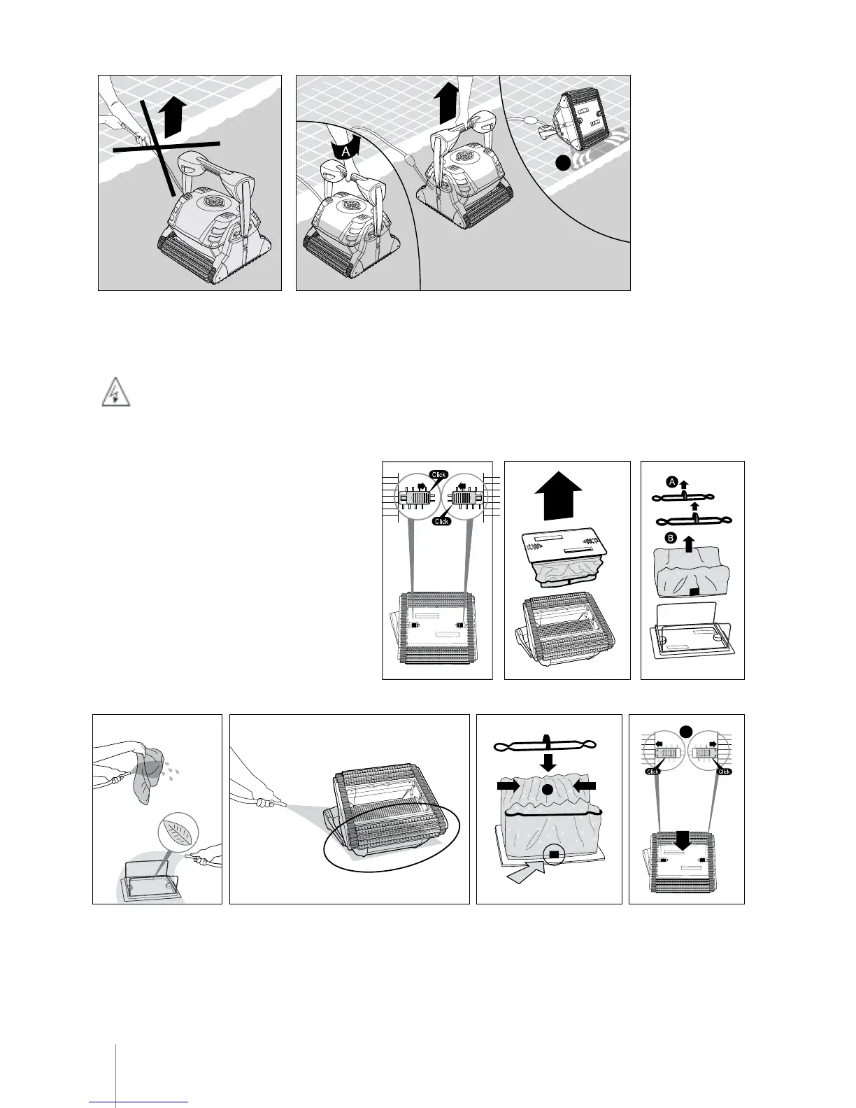 DO NOT PULL THE POOL CLEANER FROM THE POOL USING THE CABLE.
