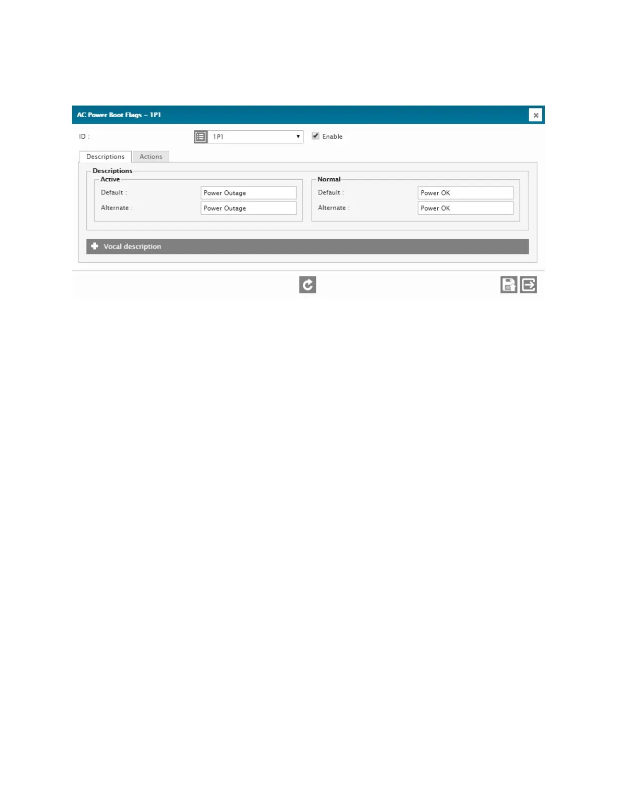 on low speed or high fee data connections. The Descriptions window for the AC Power flag is shown below :