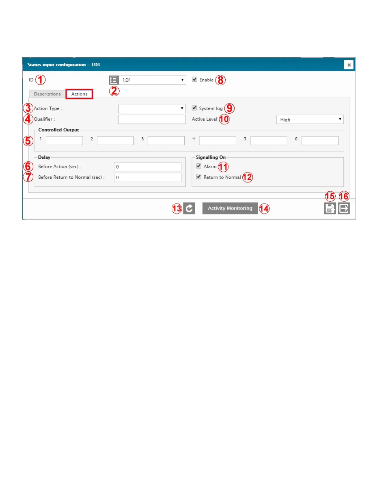 is active, the input will be monitored and be able to generate alarms. When the qualifier is non-active (or normal),