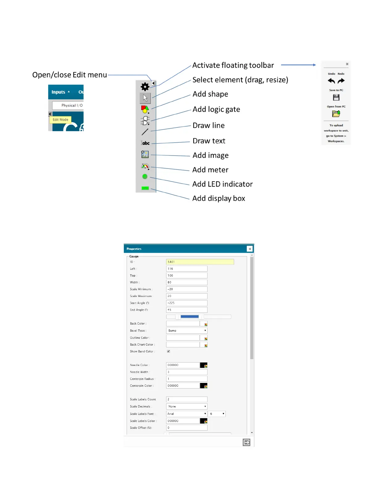 An edition menu will appear. This menu contains the tools you need to built workspaces.