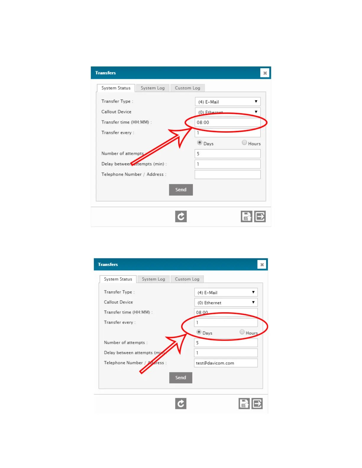 5. Set the Transfer Time. This is the time at which the System Status report will be