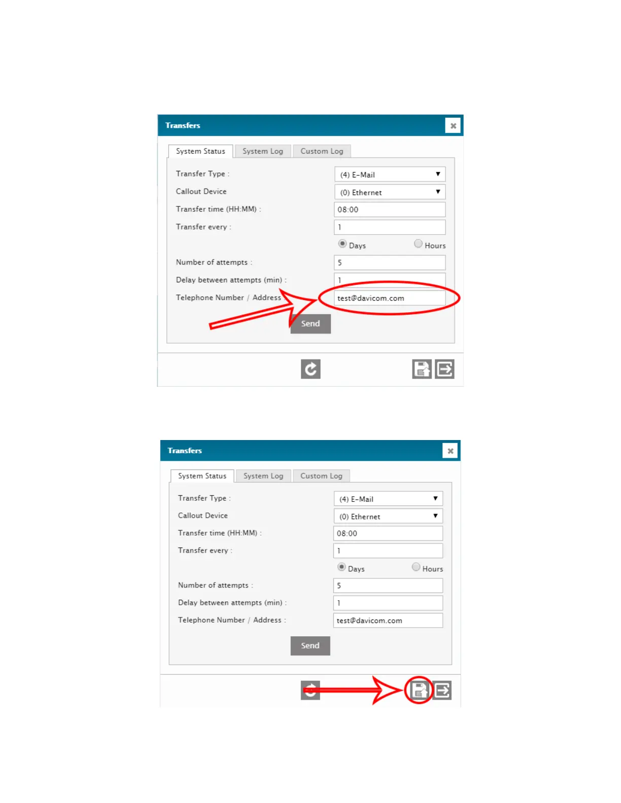 9. Enter the phone number, email, etc. to which the System Status report will be