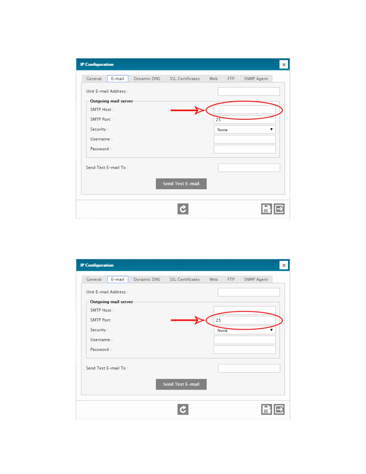 4. SMTP PORT: Set the IP Port of the SMTP email server.
