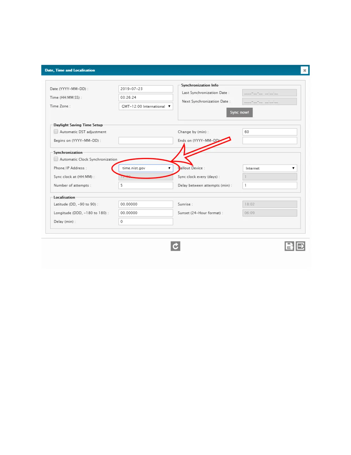 4. PHONE / IP ADDRESS: Means by which the Automatic Clock Synchronization will
