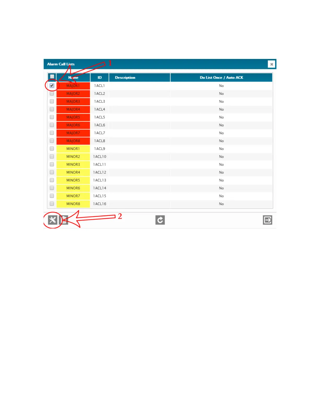 2. Select the Alarm Call List you want to configure and click on the configuration