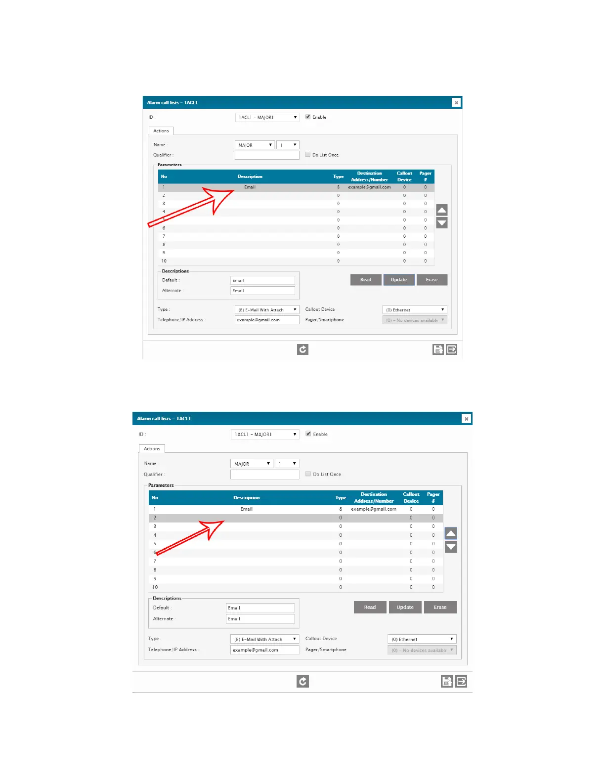 9. You should now see the first line of your alarm call list appear.