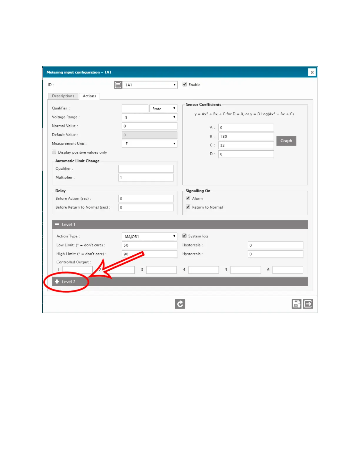 11. If you wish to add another level of alarms, click on the + next to Level 2 and fill in