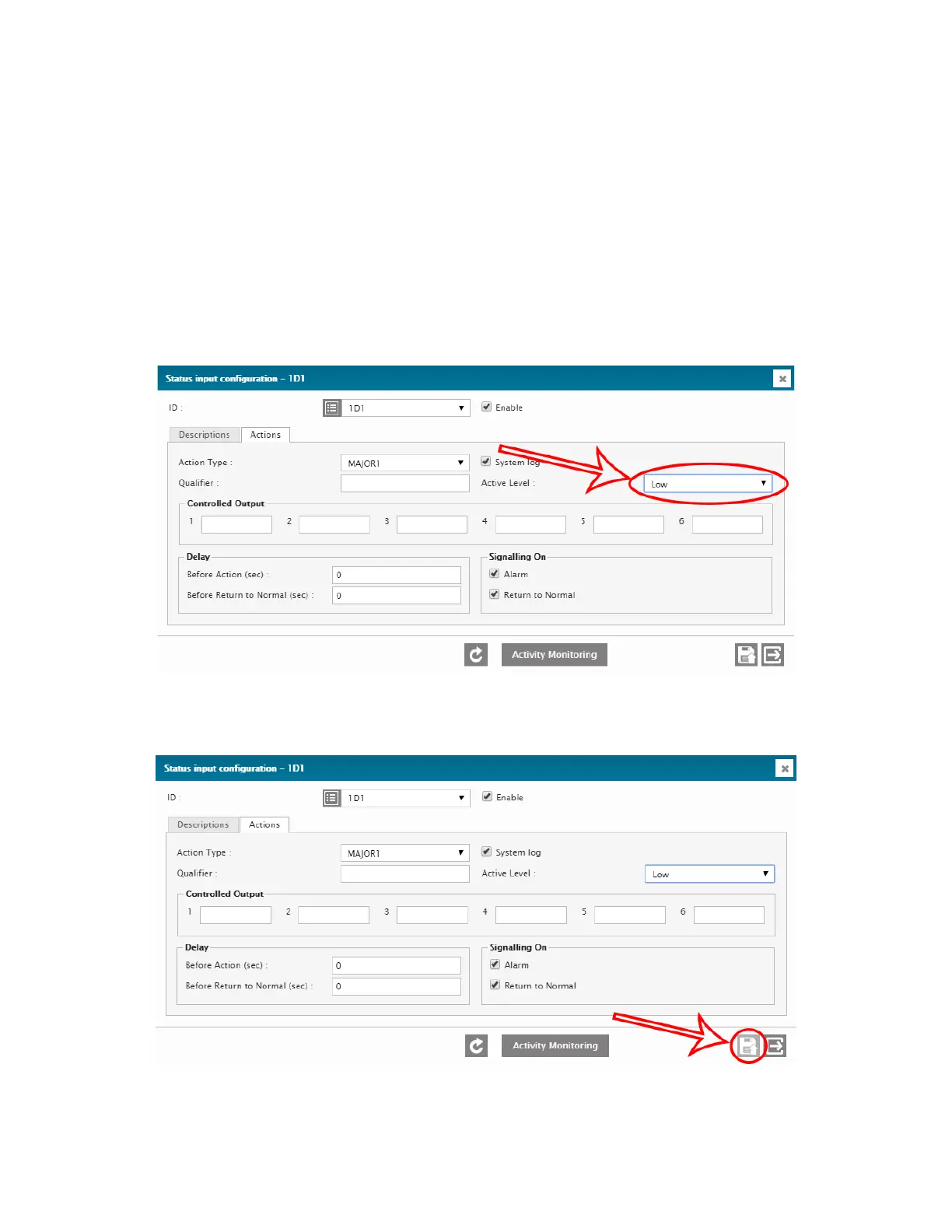 7. Set the Active Level. The Active Level determines when the Status Input will switch