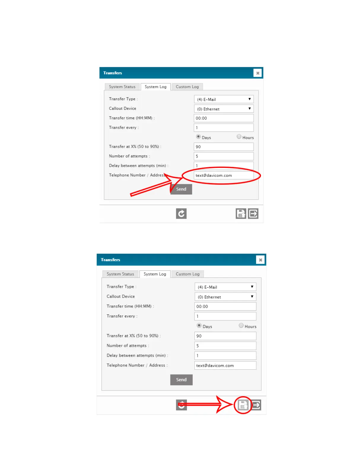 19. Enter the phone number, email, etc. to which the System Log report will be sent.