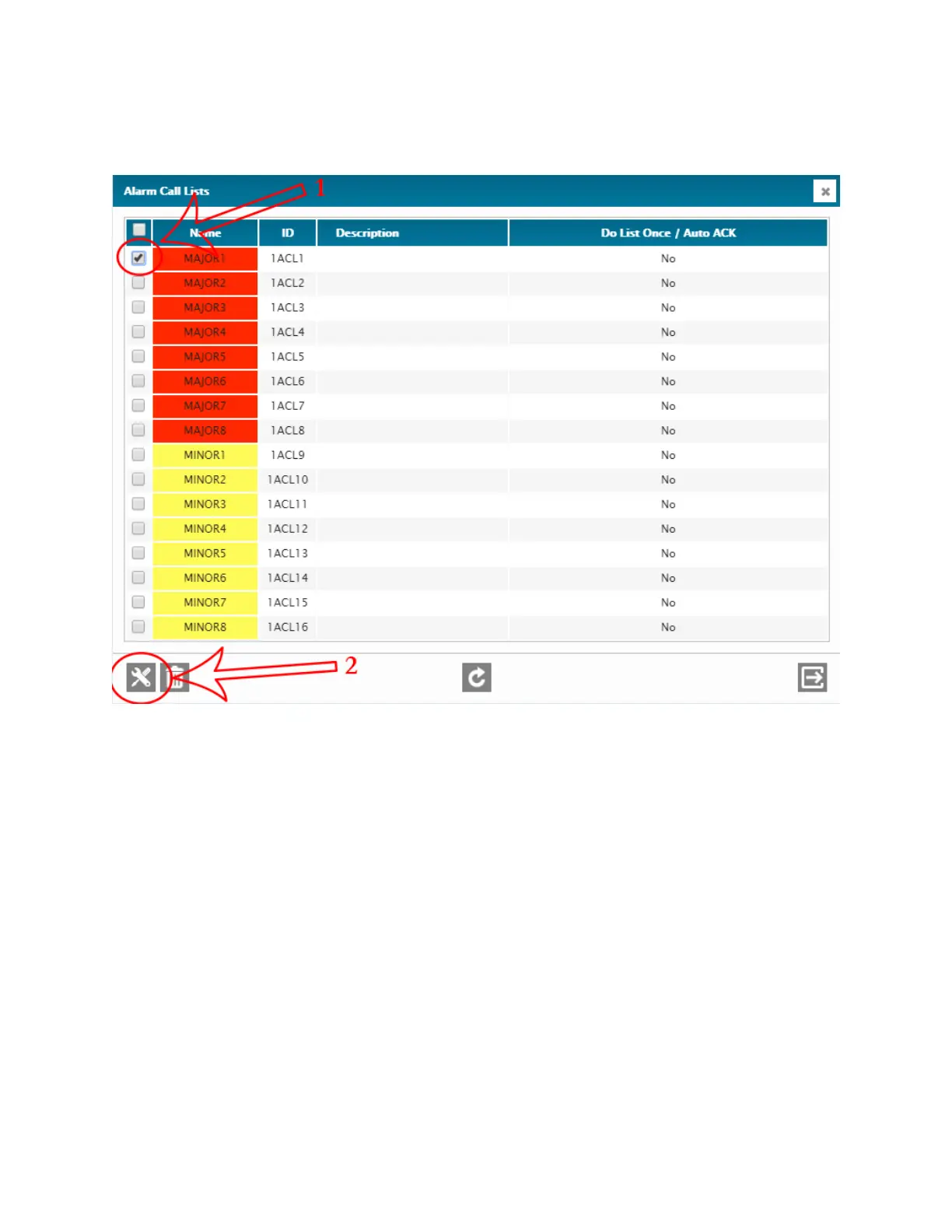2. Select the Alarm Call List you want to configure and click on the configuration
